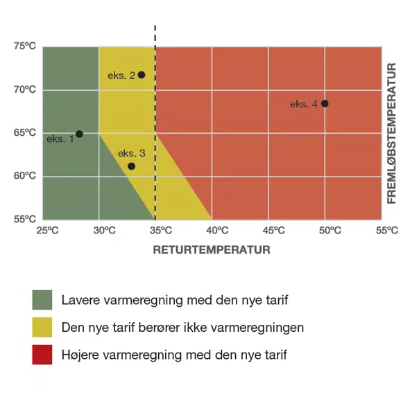 | Returtemperatur der giver højere varmepris | > 42℃ | > 40℃ | > 38 ℃ | > 37℃ | > 35℃ | > 35℃ | > 35℃ |