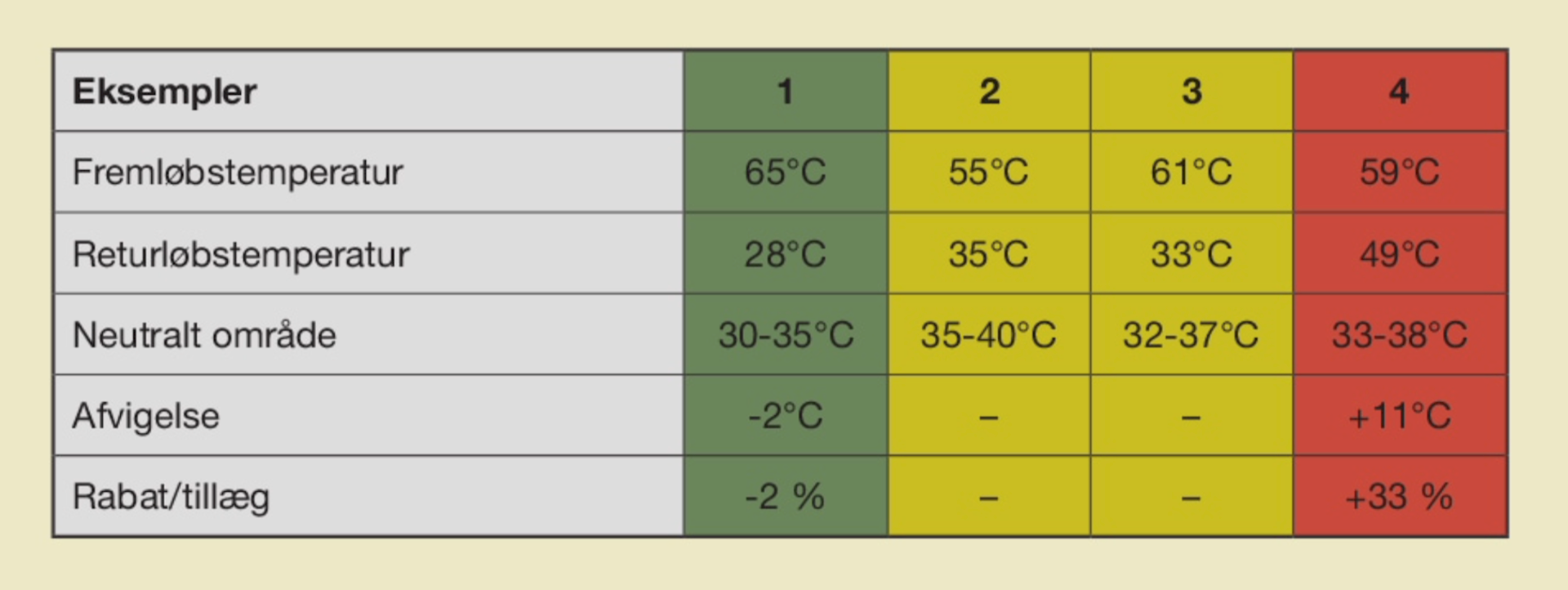 Hvis din returløbstemperatur er højere end den øvre neutrale grænse, skal du betale et tillæg på 3% af energiprisen, for hver grad returløbstemperaturen er højere.